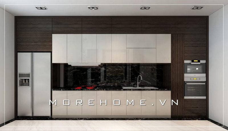 Thiết kế tủ bếp hiện đại âm tường kiểu dáng chữ L giúp tiết kiệm tối đa diện tích cho không gian sống của gia chủ