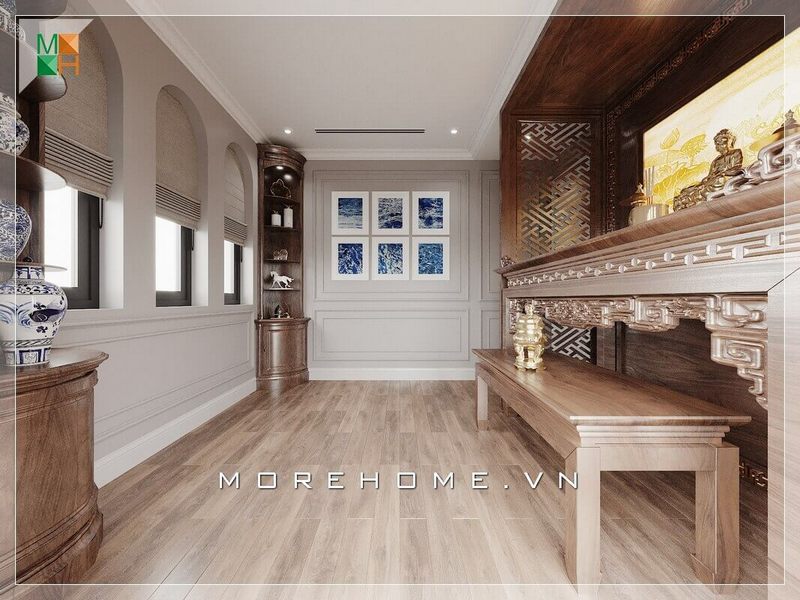 Mẫu thiết kế nội thất phòng thờ biệt thự, nhà phố, chung cư đẹp, sang trọng nhưng vẫn không làm mất đi vẻ trang nghiêm bản chất của nơi thờ phụng.