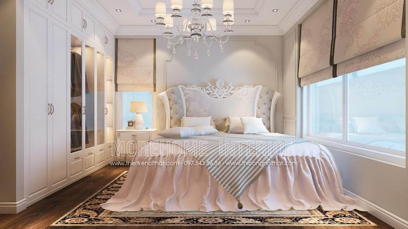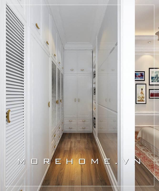 Tủ áo gỗ công nghiệp sơn cao cấp mang hơi hướng tân cổ điển, kết hợp kính tủ áo Master