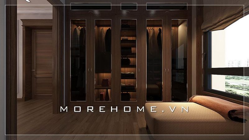 Thiết kế tủ áo cánh mở hiện đại kích trần tạo cho phòng ngủ thêm rộng và thoáng hơn