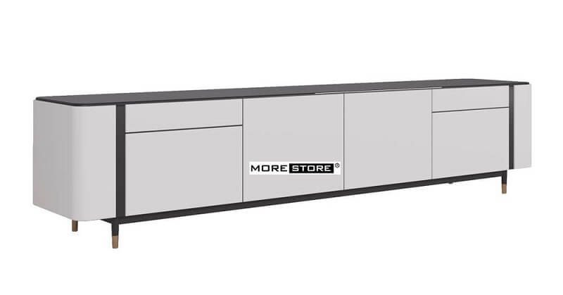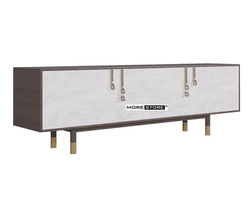 Mẫu kệ tủ gỗ gỗ công nghiệp hiện đại với phần chân cách điệu tạo cảm giác nhẹ nhàng, sang trọng và cuốn hút ánh mắt của bất cứ vị khách nào.