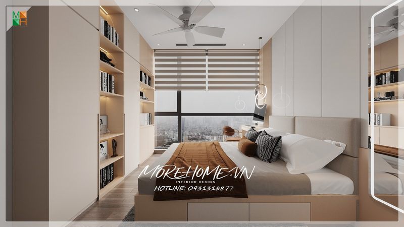 Với không gian diện tích phòng ngủ không được rộng thì việc lựa chọn nội thất vừa là tủ để đồ và có các kệ tủ để sách hay đồ vật trang trí sẽ rất tiện lợi mà lại đem tới căn phòng sự hiện đại gọn gàng.