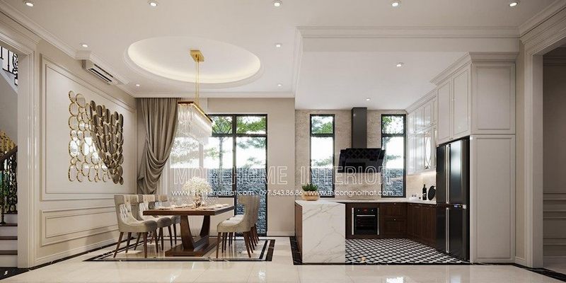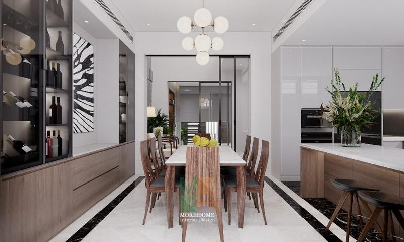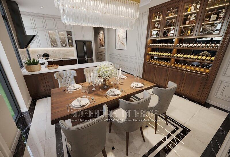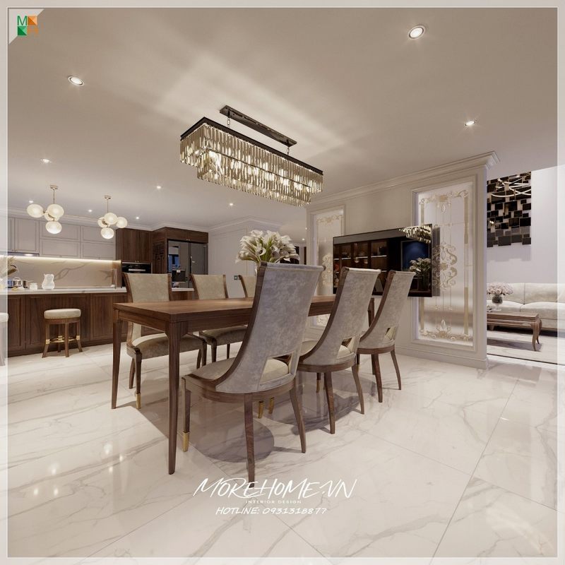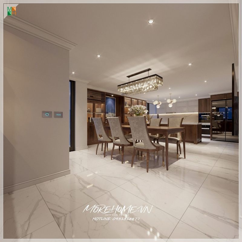 Đèn trang trí tô điểm cho không gian phòng ăn sự lung linh sang trọng vẻ đẹp quý phái.