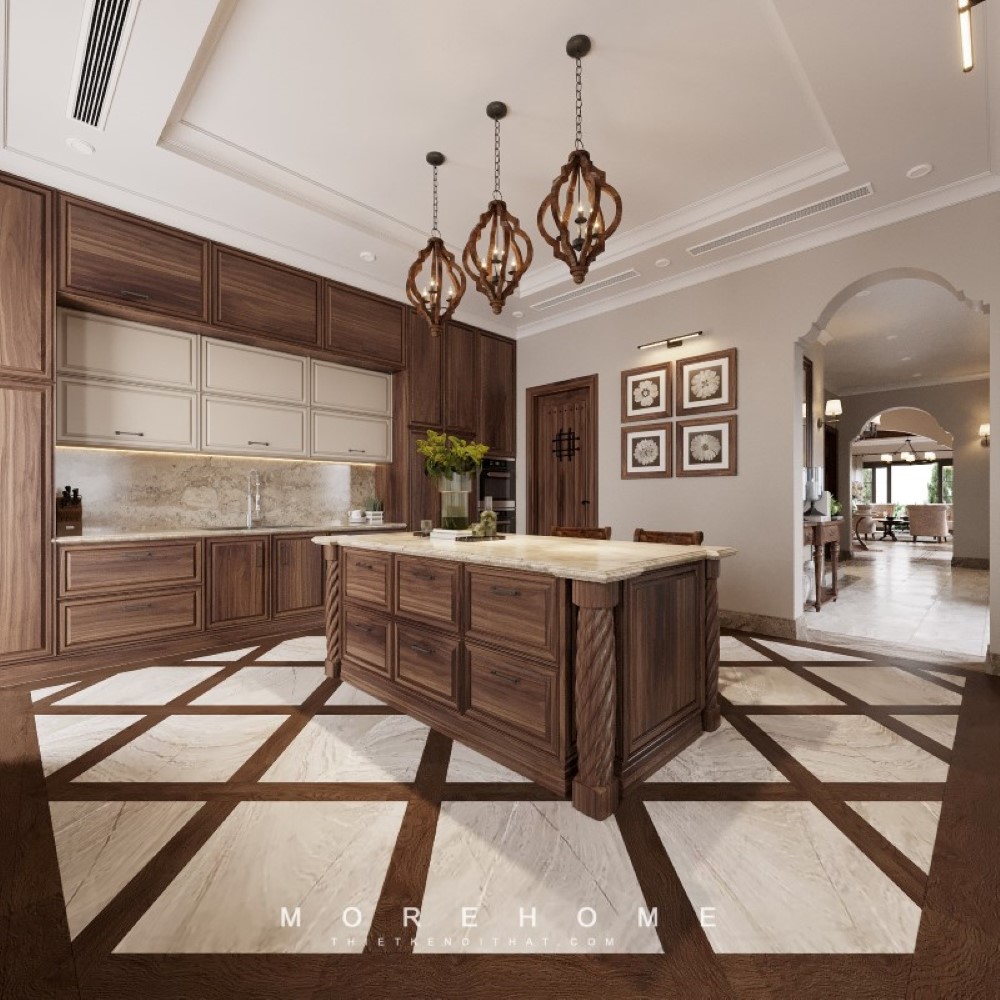 Đèn trang trí với kiểu dáng đặc biệt thu hút ánh nhìn mang tới cho không gian bếp ấn tượng độc đáo