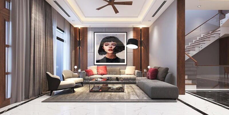 Sắp xếp nội thất phòng khách hiện đại đẹp cho biệt thự, nhà phố tại Vinh Nghệ An.
