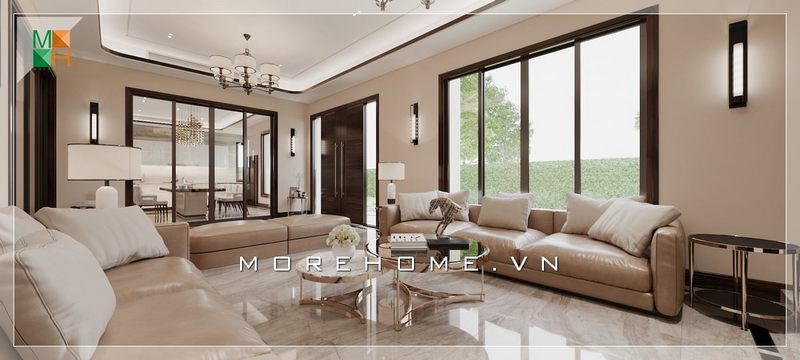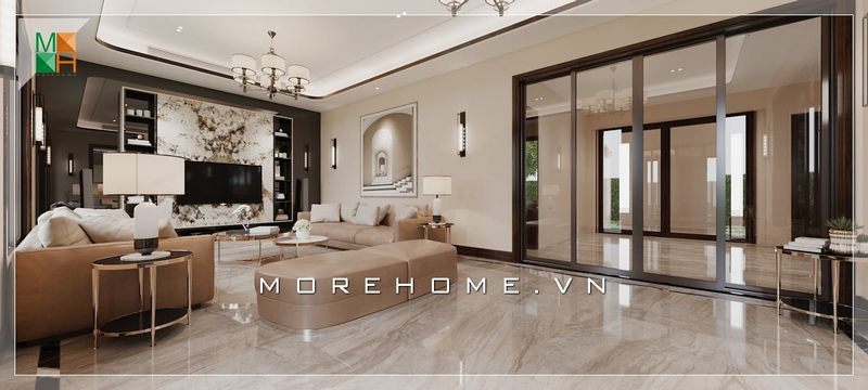Gây ấn tượng với người nhìn bằng mẫu thiết kế phòng khách biệt thự đẹp sang trọng tinh tế và tiện nghi của Morehome.