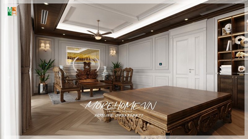 Sàn gỗ mang lại sự nổi trội về màu sắc giữa không gian đem lại sự sang trọng hiện đại
