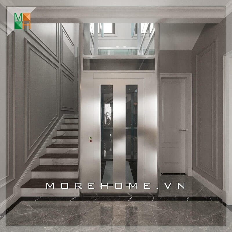 Mẫu thiết kế thang máy thông minh và hiện đại phù hợp cho thiết kế nội thất biệt thự, nhà phố cao cấp và sang trọng.