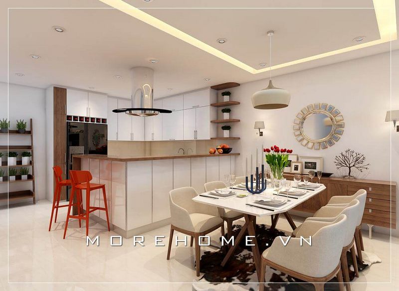 Thiết kế nội thất phòng ăn chung cư hiện đại, đơn giản và tiện nghi