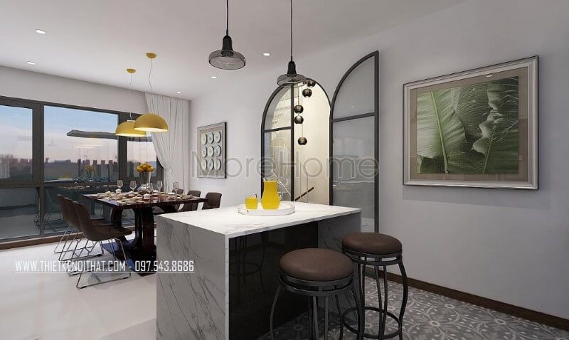 Thiết kế phòng bếp đảo kề phòng ăn mang phong cách hiện đại, đẹp, sang trọng.