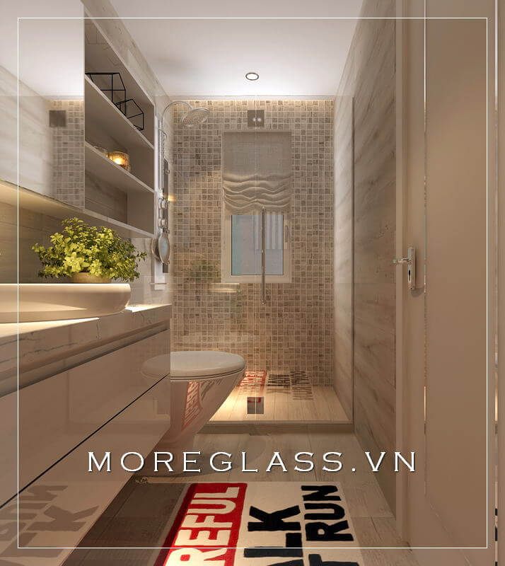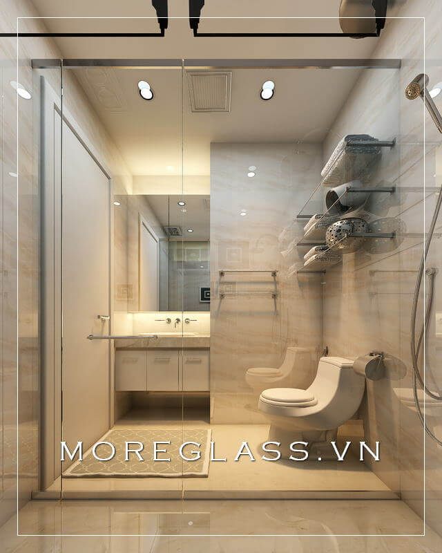 Mẫu thiết kế nhà tắm kính đẹp có vẻ đẹp tinh tế, sang trọng nhưng không làm cho phòng tắm nhỏ trở nên bí bách.