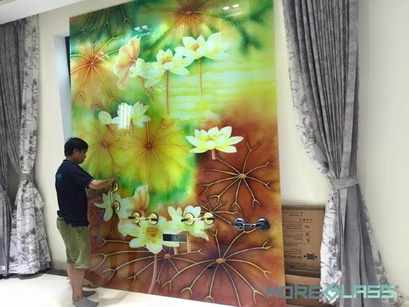 Mẫu tranh khắc kính hoa sen đẹp cao cấp dành cho nhà phố, chung cư, biệt thự