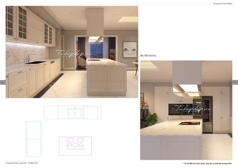 Không gian bếp của căn hộ được thiết kế tinh tế với màu trắng trẻ trung, nội thất bếp có kiểu dáng tân cổ điển và đẹp mắt khó cưỡng.